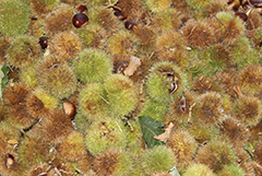 Se realiza generalmente a mano siendo necesario el uso de guantes para evitar las púas de los erizos. La recolección manual permite la selección del fruto a medida que se recoge. Las castañas se depositan en cestos de mimbre, para dejar que el fruto respire y no se pudra.