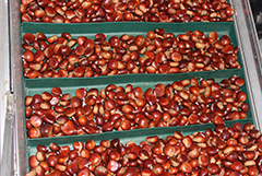- Calibrado. Tras la recepción y pesado una máquina clasificadora separa las castañas en varios tamaños.